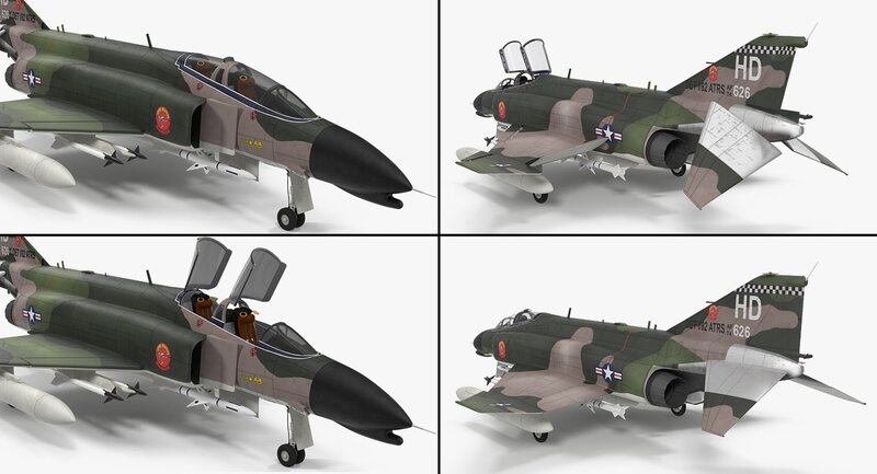 McDonnell Douglas F-4 Phantom II Rigged is a high quality, photo real model that will enhance detail and realism to any of your rendering projects. With detailed cockpit. Cockpit door can be opened. The model has a fully textured, detailed design that allows for close-up renders, and was originally modeled in 3ds Max 2012 and rendered with V-Ray. Fidelity is optimal up to a 2k render. Renders have no postprocessing.