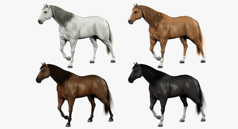 The pack includes the horse model with 4 color/fur coats.