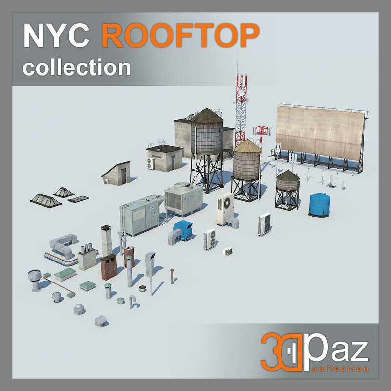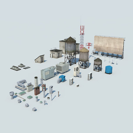 High quality NYC roof details for your visualization. Best for city scene kitbash Render ready with: V-Ray