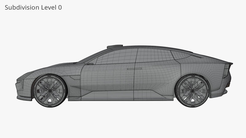 Description: A highly detailed exterior and simplified interior of Polestar's Precept concept car. The doors, bonnet, and trunk cannot be opened. Modeled in Blender using camera matched reference images and subdivision surfaces. Some exterior parts have had a level of subdivision applied and cut afterwards for better shading.