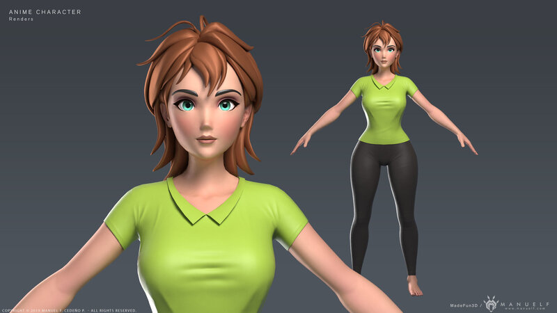 Anime Cartoon Girl Young woman Character Low-poly 3D model