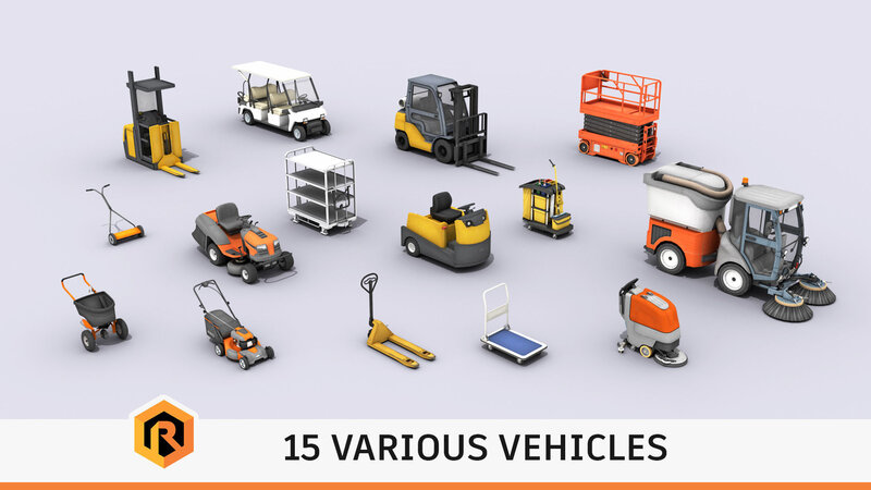 This pack includes 15 High-quality low-poly 3D models of various types of vehicles.