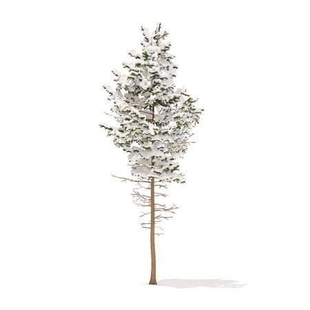 Pine tree with snow 3d model. Height: 7.7m. Compatible with 3ds max 2010 (V-Ray, Mental Ray, Corona) or higher, Cinema 4D R15 (V-Ray, Advanced Renderer), FBX, OBJ and VRMESH.