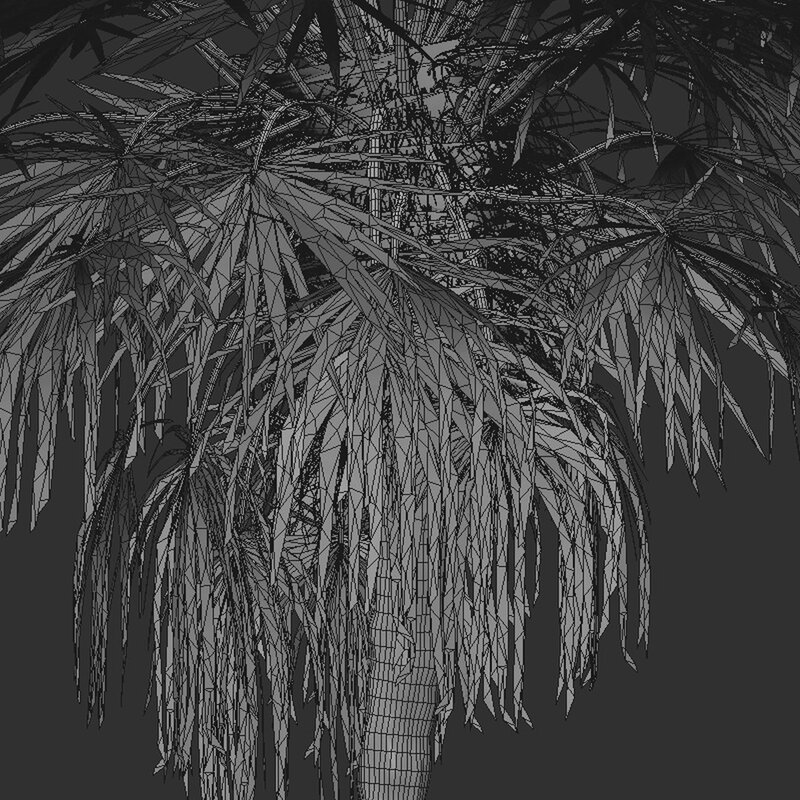 4 different Trachycarpus Fortunei trees in the scene.