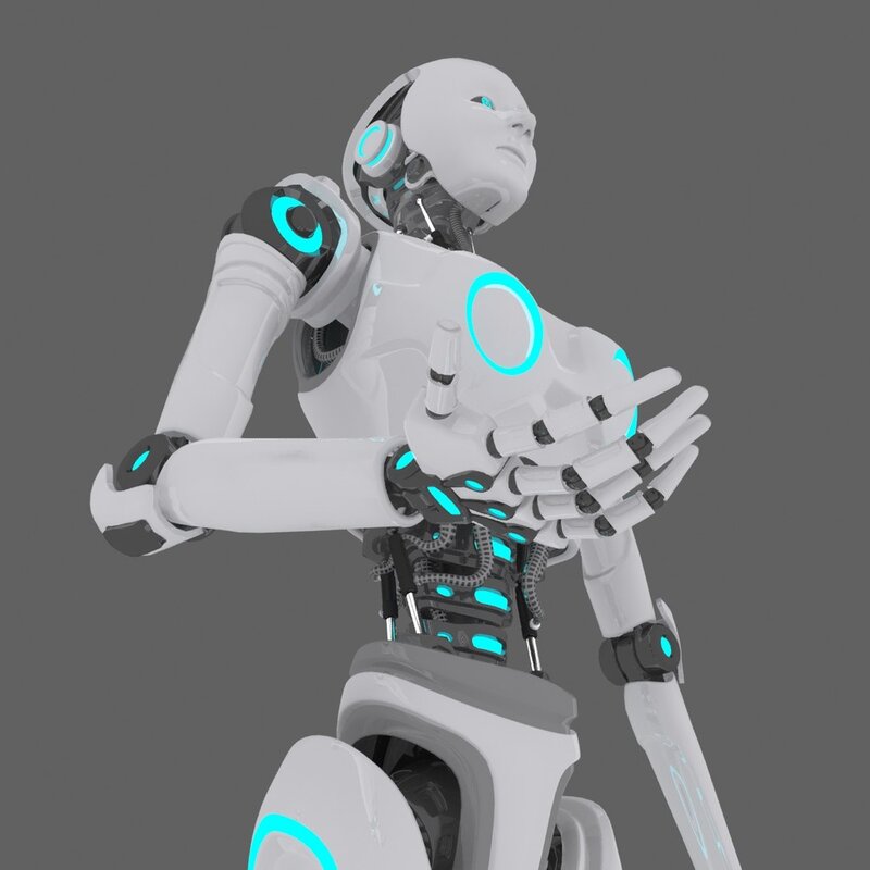 This is a female robot models , designed plastics and metals , coupled with the blue light . material and textures includes, this model made with maya, and rendering and shader use Mental Ray